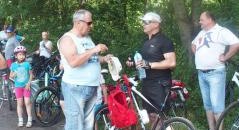 Licznie zgromadzeni uczestnicy pod eskortą policji ruszyli na trasą tuż po godzinie 11. Trasa była zróżnicowana, ale niezbyt wymagająca. Organizatorzy zadbali o to, by zarówno dzieci, jak i osoby starsze mogli bez problemy podołać wymaganiom na całej trasie. Po przejechaniu kilku kilometrów był pierwszy postój, a na nim poczęstunek przygotowany przez MOSiR (batoniki i soki). Po uzupełnieniu kalorii cykliści ruszyli dalej. - Pogoda, widoki i oczywiście uczestnicy, tryskający zdrojami dobrego humoru. - Dopisało wszystko - uśmiecha się Adam Hrehorowicz, nie kryjąc wielkiej satysfakcji z organizacji i przebiegu rajdu. Około godz. 13.30 dotarliśmy do celu dłuższego postoju, czyli do agroturystyki na Wiosce u państwa Jakóbczaków, gdzie tradycyjnie czekały już na nas przygotowane przez pracowników MOSiR-u pieczone kiełbaski, ciepłe i zimne napoje oraz inne niespodzianki. W tym miejscu po posiłku przeszliśmy do konkurencji dla najmłodszych oraz tych trochę starszych.