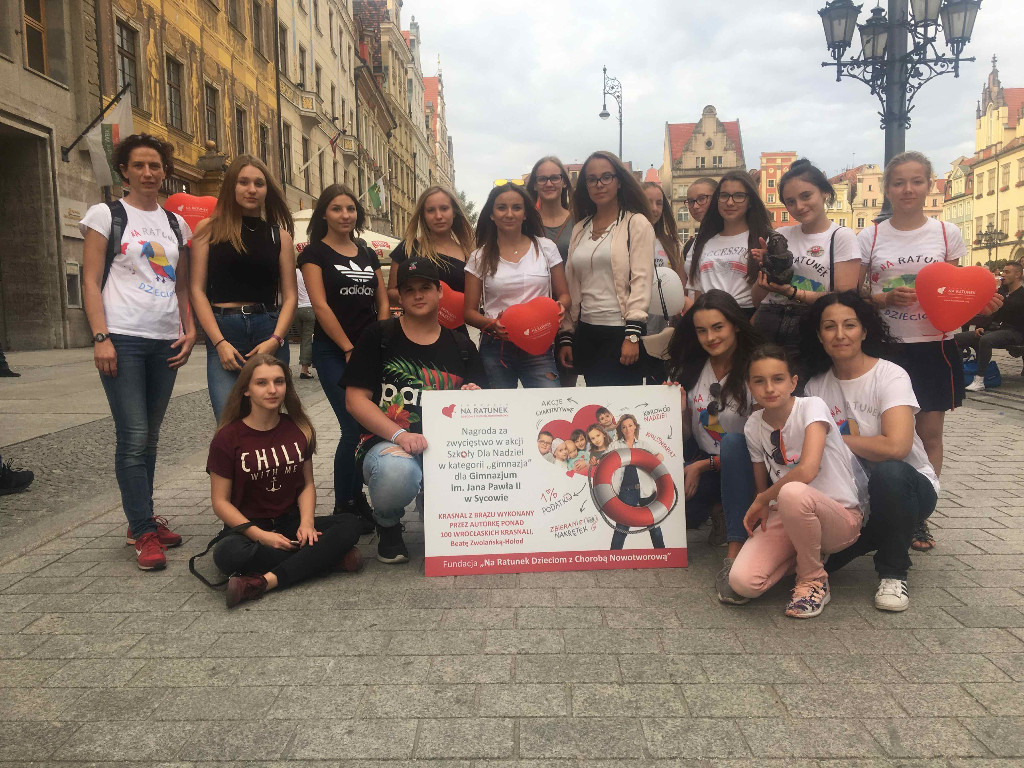 W sobotę 9 września ulicami Wrocławia przemaszerował „Korowód Nadziei”, cykliczna impreza plenerowa organizowana na początku września przez Fundację „Na Ratunek Dzieciom z Chorobą Nowotworową”. Przez miasto przechodzi wówczas orszak konny, któremu towarzyszą paradne dorożki zespoły folklorystyczne, mażoretki oraz kwestujący wolontariusze i przyjaciele Fundacji. Meta Korowodu znajduje się na Placu Gołębim Rynku Wrocławskiego. Ideą jest zwrócenie uwagi na konieczność pomocy dzieciom zmagającym się z rakiem. W sobotnie popołudnie na Rynku Wrocławskim uczniowie sycowskiej placówki odebrali główną nagrodę w kategorii gimnazja.