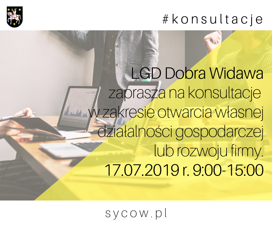 LGD Dobra Widawa w dniu 17.07.2019r. w siedzibie Urzędu Miasta i Gminy Syców organizuje konsultacje w zakresie wsparcia otwierania i rozwoju firm. W trakcie spotkania bedzie można zasięgnąć wiedzy z zakresu zarówno merytorycznych wymagań nowej działalności oraz możliwości finansowego wsparcia zarówno dla nowych i już funkcjonujących firm.