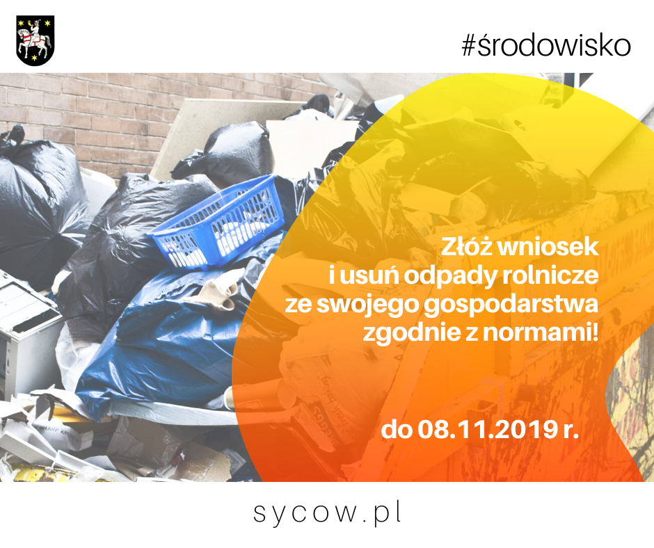 W związku z powyższym, do uzyskania przez Gminę Syców dotacji na ww. cel konieczne jest zebranie informacji dotyczących ilości posiadanych przez mieszkańców Miasta i Gminy Syców odpadów pochodzących z działalności rolniczej.