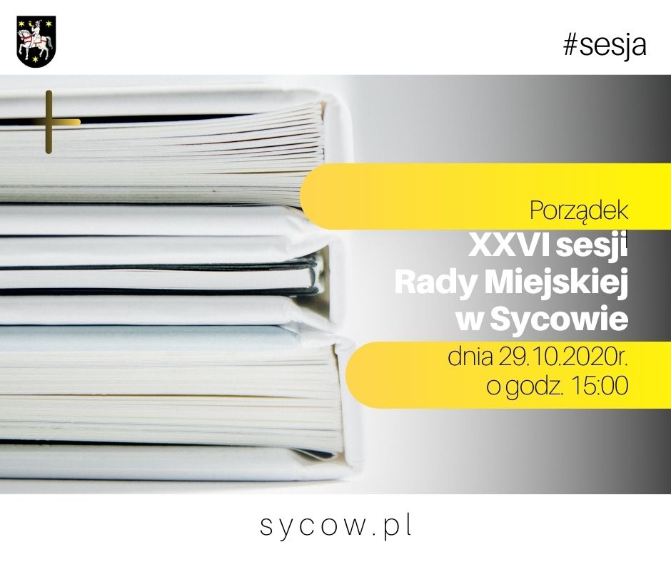 Porządek XXVI Sesji Rady Miejskiej w Sycowie z dnia 29 października 2020 r. , godz. 15:00 Urząd Miasta i Gminy Syców, ul. Mickiewicza 1, s.57, IIIp.