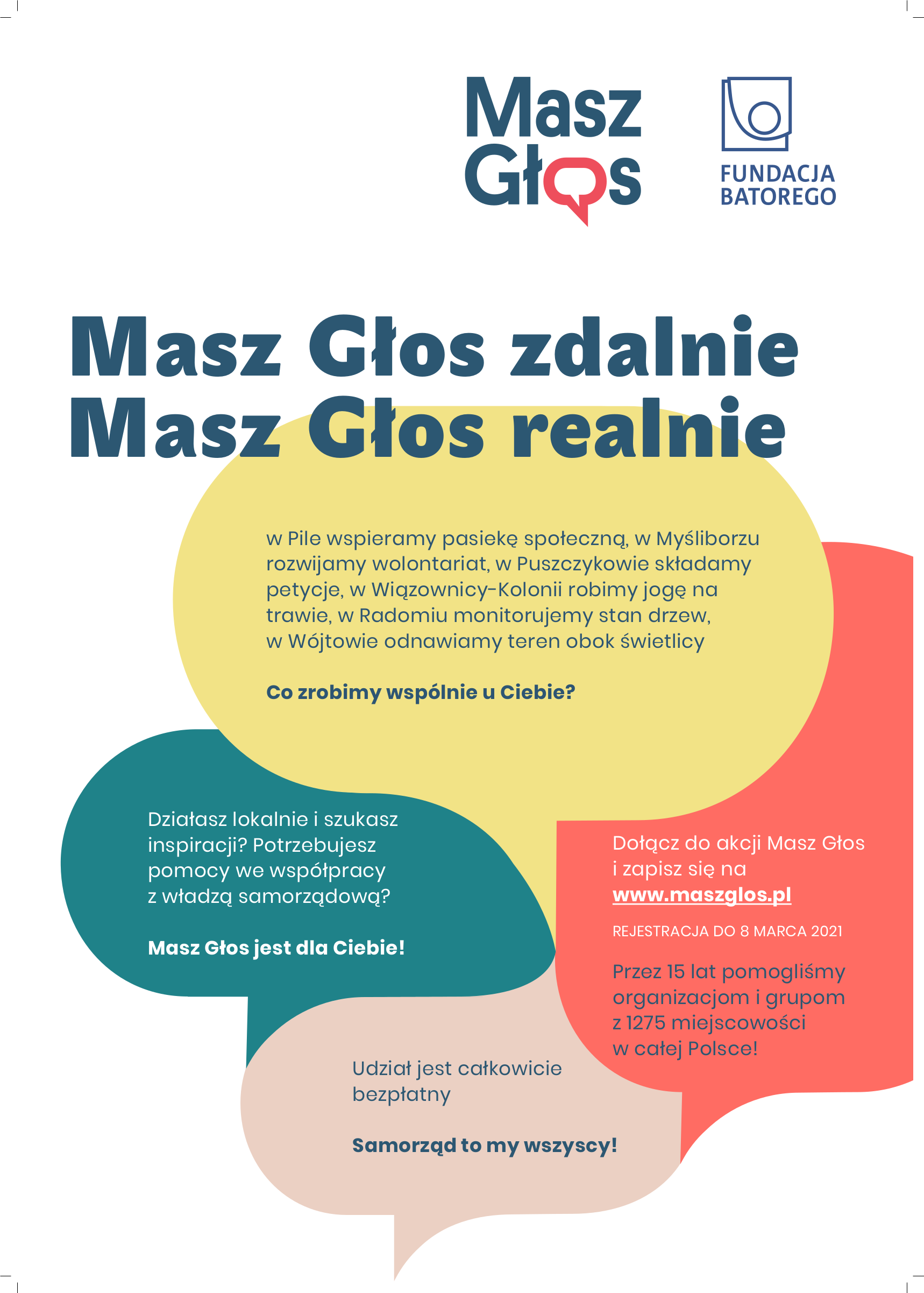 "Od poniedziałku 15 lutego dołączajcie do nas! Wypełnijcie formularz zgłoszeniowy i weźcie udział w rozmowie z koordynatorem. Akcja Masz Głos 2021 będzie pod wieloma względami wyjątkowa!" Zaprasza Fundacja im. Stefana Batorego.