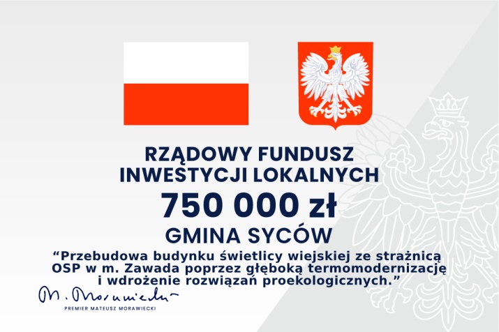 Pozyskaliśmy kolejne środki na zadanie pn. Przebudowa budynku świetlicy wiejskiej ze strażnicą OSP w m. Zawada poprzez głęboką termomodernizację i wdrożenie rozwiązań proekologicznych. Środki pochodzą z Rządowego Funduszu Inwestycji Lokalnych.